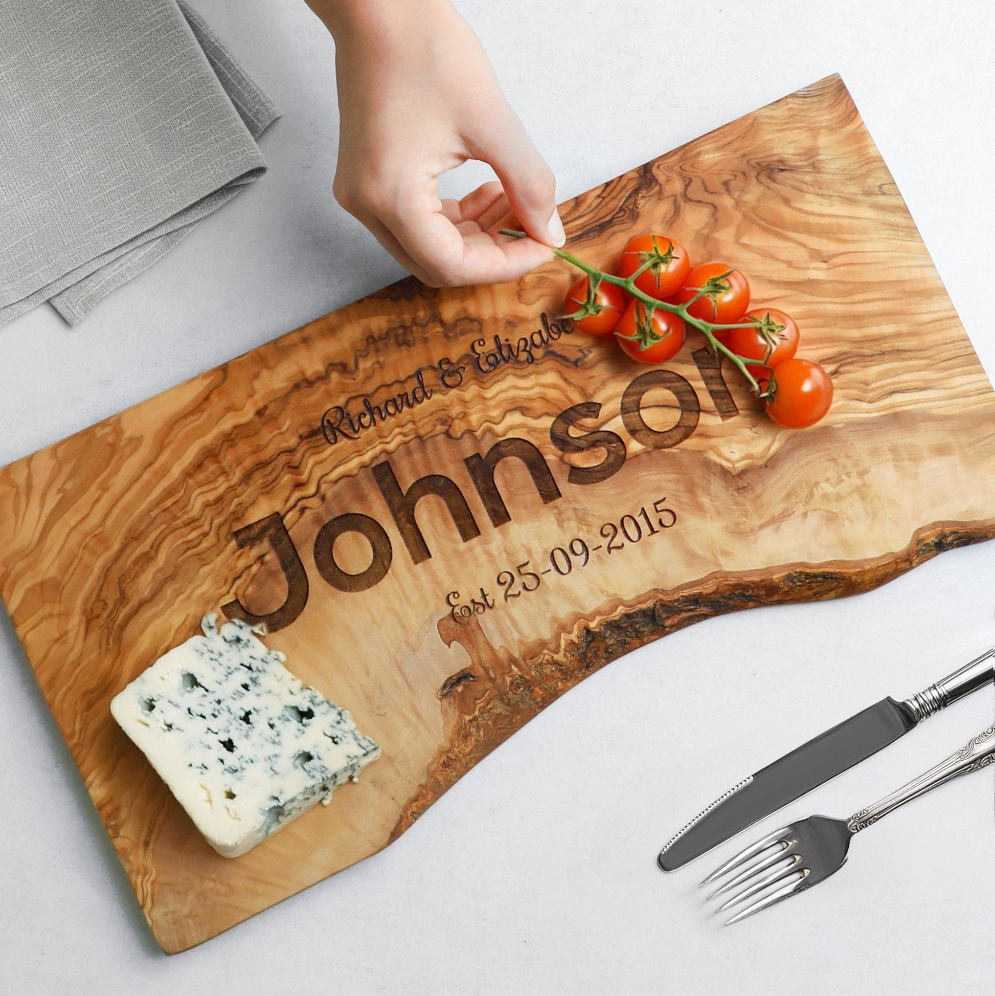 Our cutting boards are made from olive wood and are laser engraved to perfection. Get logos, quotes, images or anything else you can think of. All our boards are sanded and sealed for lasting protection.